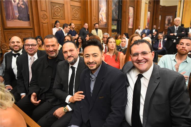 وتقدّم الحضور عدد من النجوم الكبار مثل ماجد الكدواني، ماجد المصري، حمادة هلال، محمود حميدة، أحمد رزق، إدوارد، عمرو عبد العزيز، محمد جمعة، أحمد زاهر، وعلاء مرسي، إلى جانب وجوه أخرى من الوسط الفني الذين حضروا لتهنئة العروسين.