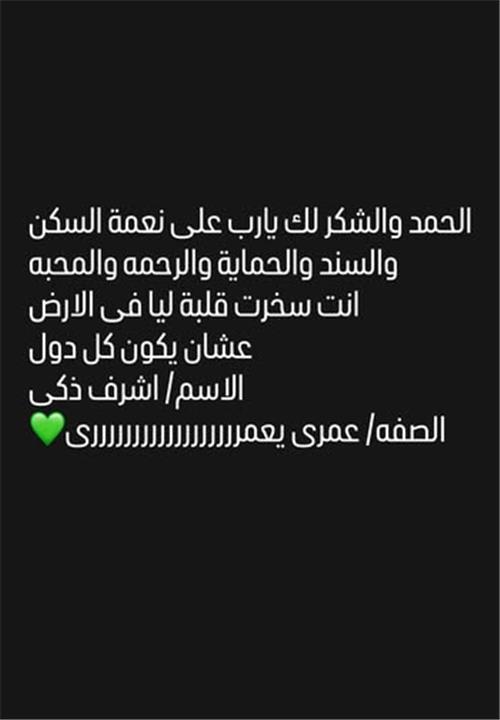 ونشرت روجينا عبر حسابها الرسمي على موقع «فيسبوك» رسالة مؤثرة جاء فيها: «الحمد والشكر لك يا رب على نعمة السكن والسند والحماية والأمان والرحمة والمحبة... أنت سخّرت قلبه ليا في الأرض عشان يكونوا كل دول».